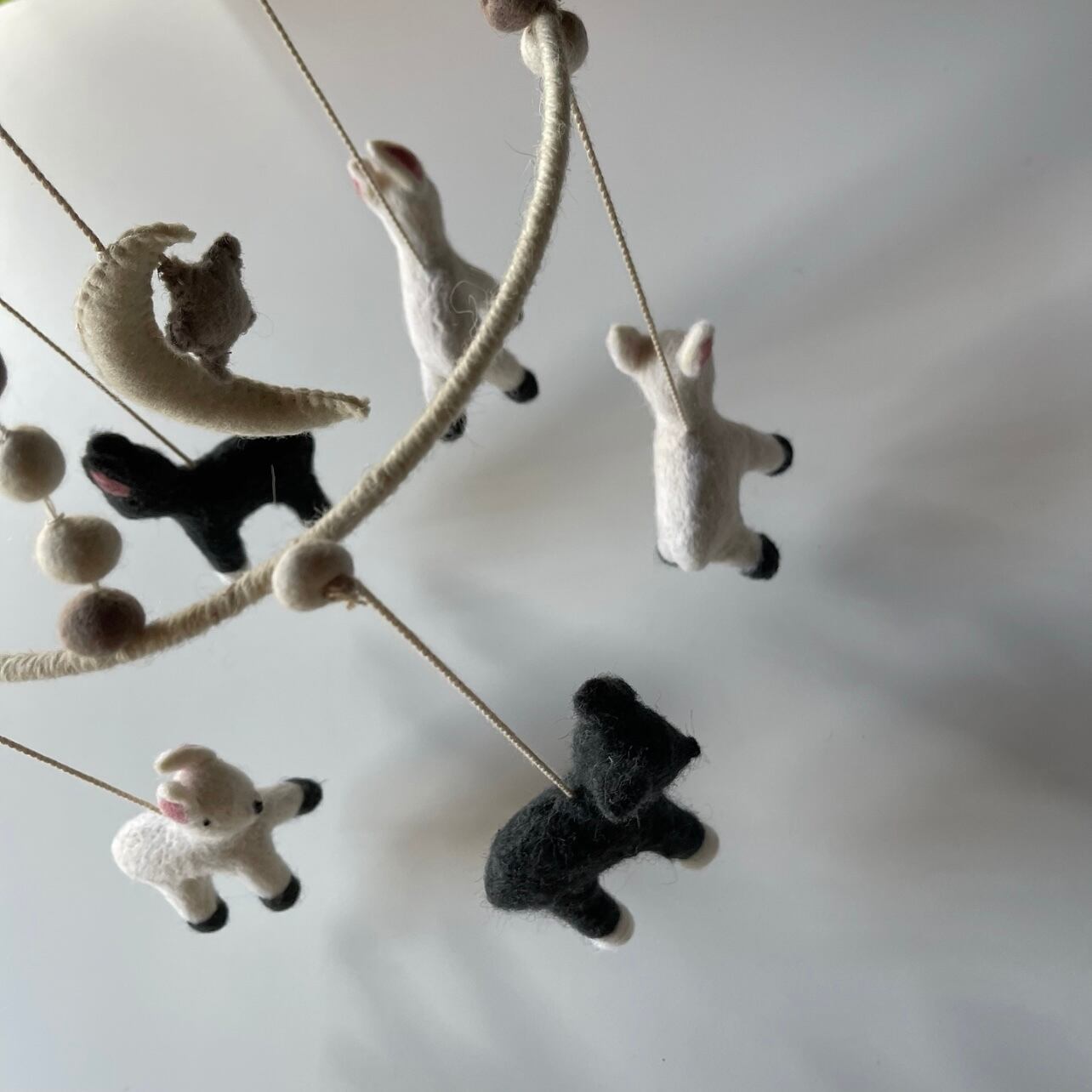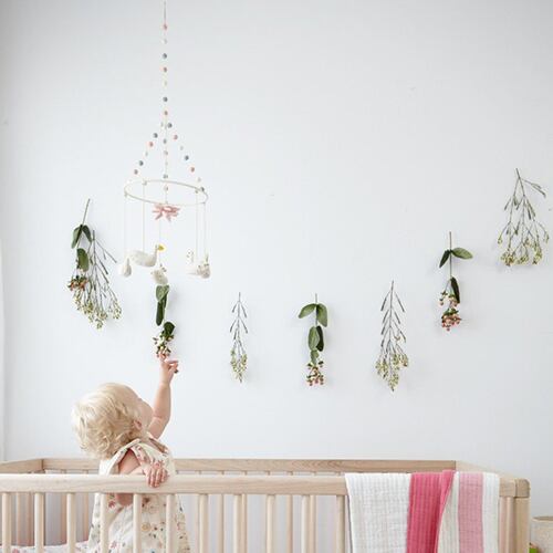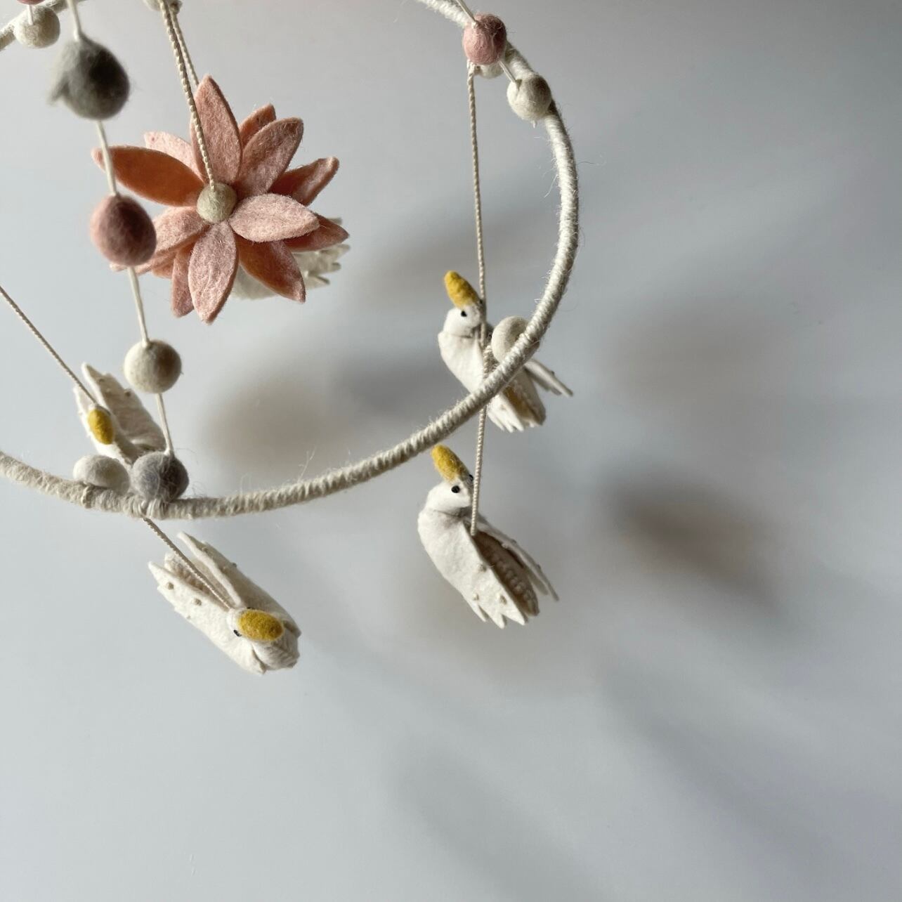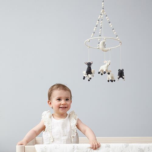 インテリアに馴染むデザインとカラーなので、寝室にはもちろんリビングや家族が集まる空間に飾れるモビールとなっております。